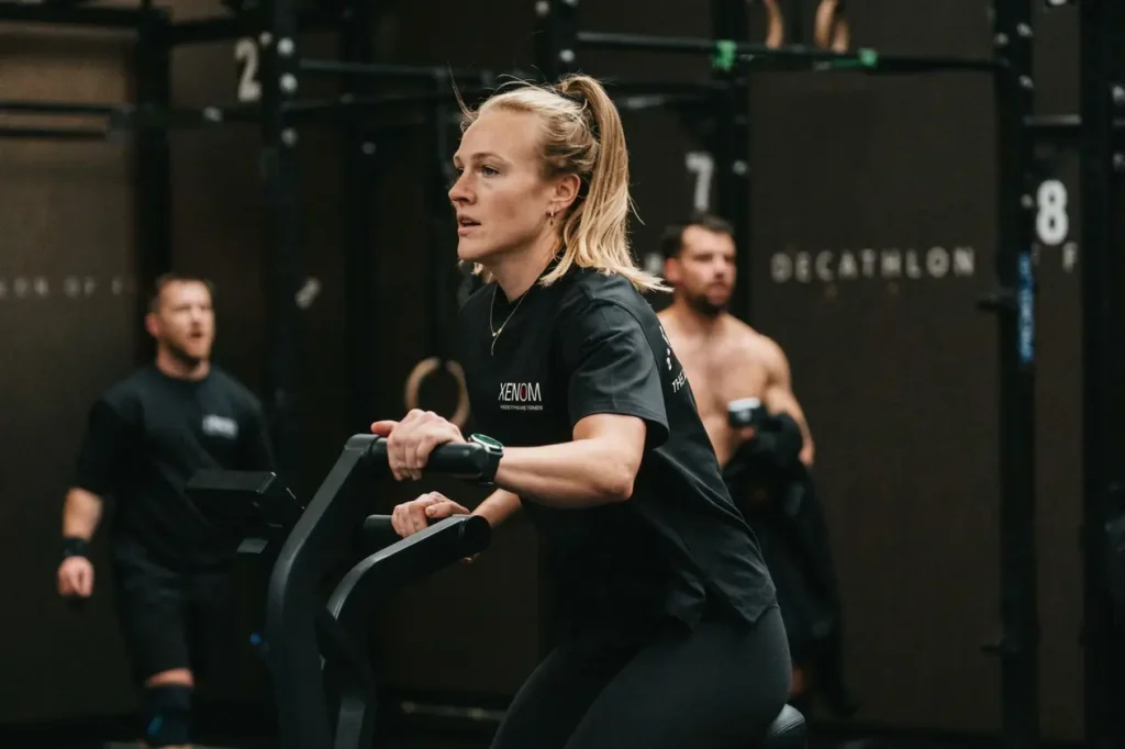 Es una prueba de paciencia tanto como de condición física. XENOM tiene una estructura de tres bloques idénticos que invita a una estrategia diferente: encontrar un nivel de esfuerzo alto pero sostenible dentro de cada bloque, sabiendo que la duración total es menor y que hay un principio de «reset» en cada nueva ronda.